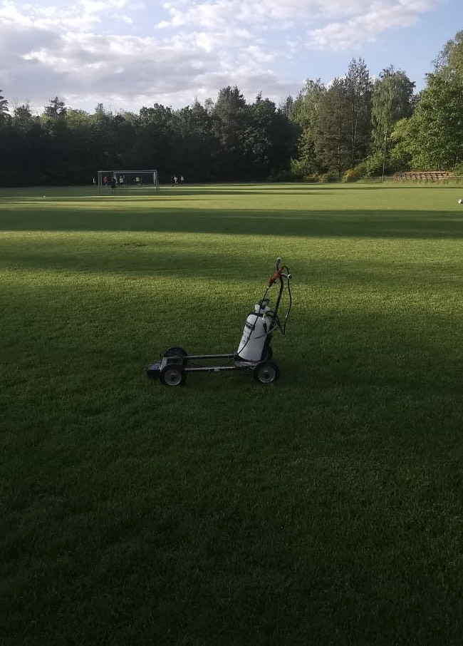 na naszej płycie boiska już nie musimy używać wapna do malowania liń,
